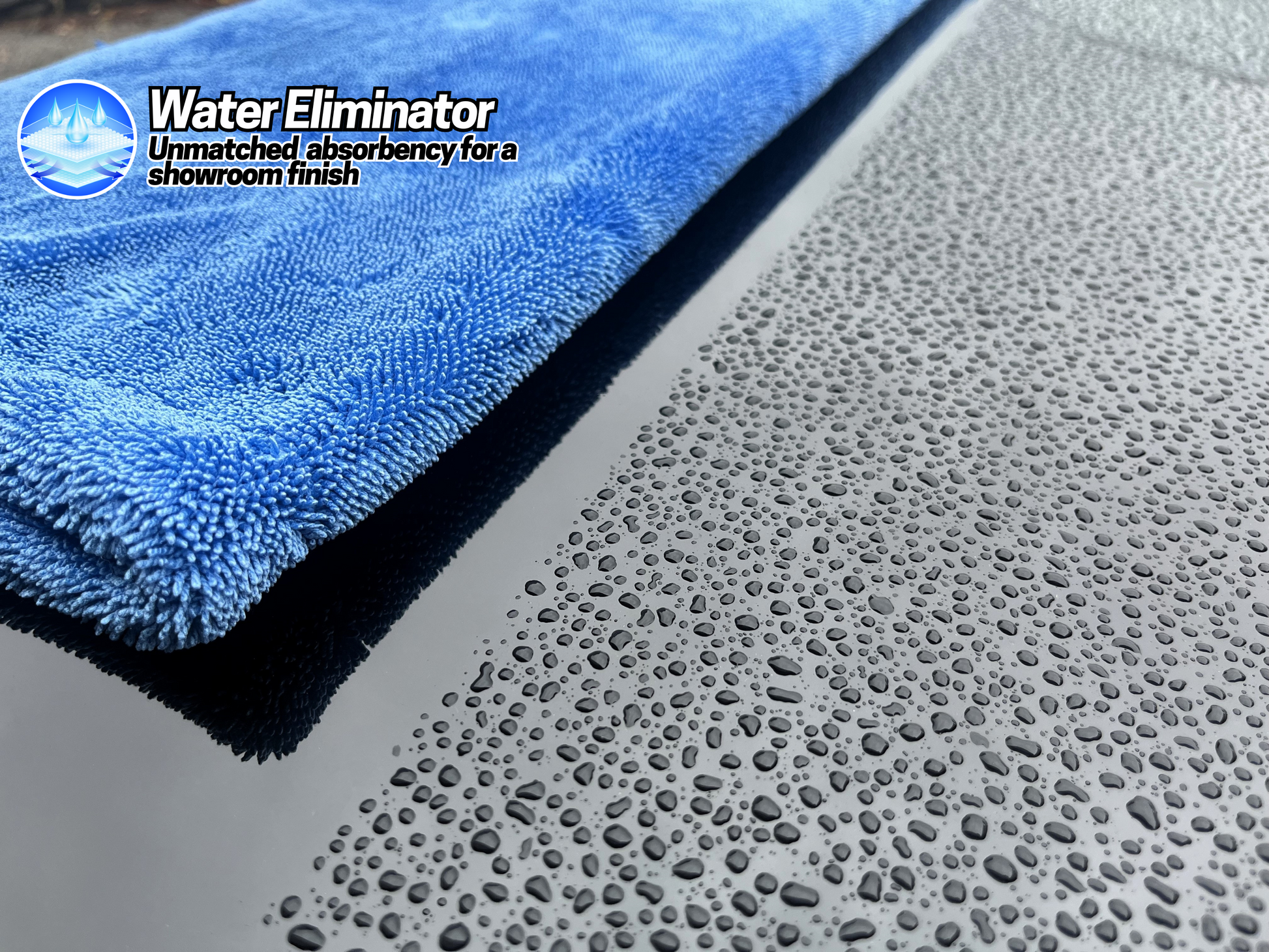 • ADVANCED FIBERS - The long twisted loop pile fibres soak up the surface water. The towel's thickness and large surface area maximize its absorption and water storage while the car is dried. Holds 10 times its weight in water!